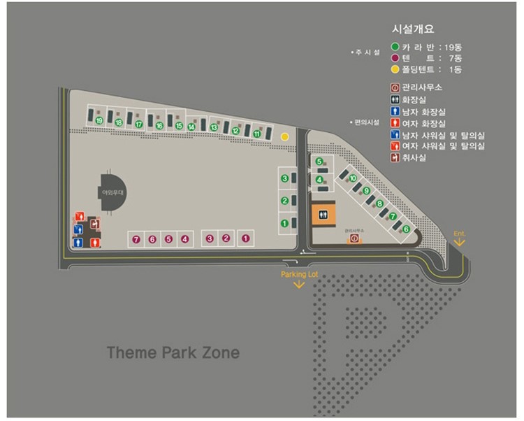 일반 사이트 7동, 카라반 19동, 폴딩텐트 1동