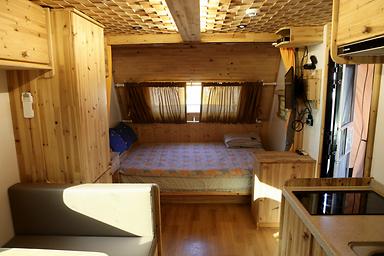 카라반 숙소는 독립된 공간에서 휴식을 취할 수 있도록 되어 있습니다. 각 카라반에는 냉장고, 전자레인지, 에어컨, 난방기 등의 가전제품이 구비되어 있어서 편리하게 생활할 수 있습니다.