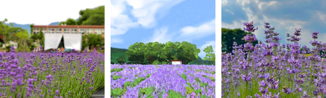 이곳은 라벤더뿐만 아니라 호밀밭, 수레국화 등 꽃과 메타세콰이어 등 나무가 이루어진 테마 정원을 운영하고 있어 다채롭게 감상하실 수 있습니다.