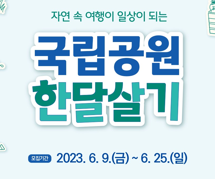 국립공원에서 한 달간 살면서 자연과 함께하는 일상체험을 제공하는 '국립공원 한달살기' 참여자 모집 안내입니다. 이번에는 국립공원에서 제공하는 일상체험에 대해 자세히 알아보겠습니다.