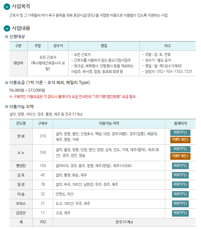 눈에 띄는 것은 복지휴양콘도 서비스를 신청할 수 있는 점인데요.
