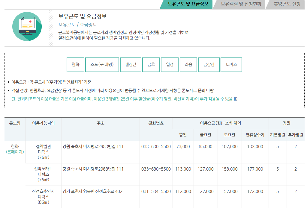 눈에 띄는 것은 복지휴양콘도 서비스를 신청할 수 있는 점인데요.