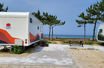 - 자동차캠핑장: 3.6m x 5.4m 크기의 데크를 갖춘 사이트로, 총 14개 사이트가 바다 앞에 배치되어 있습니다.