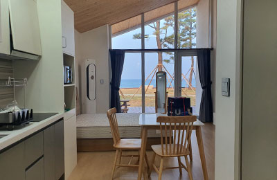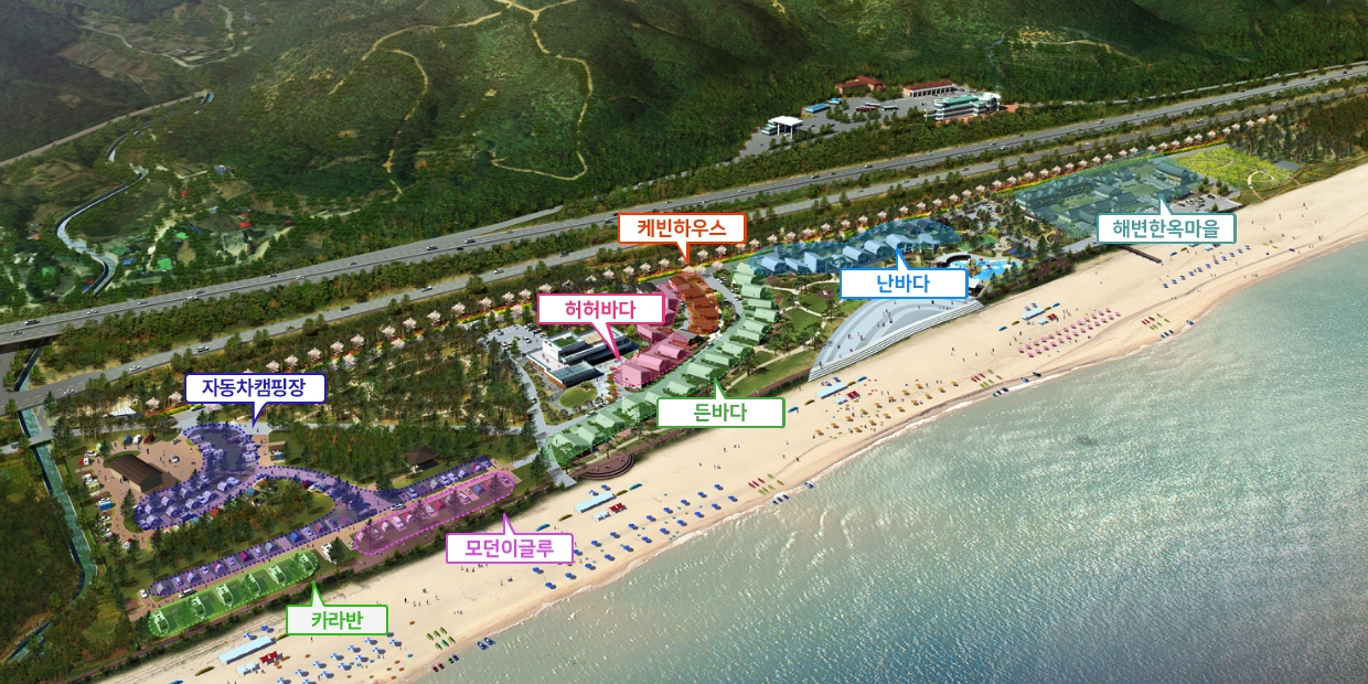 - 다양한 숙박 옵션: 캐빈하우스, 든바다, 난바다, 허허바다, 자동차캠핑장, 캐라반, 글램핑, 전통한옥 등 다양한 숙박 시설을 제공합니다.