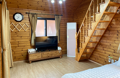 - 카라반: 6인용 카라반이 마련되어 있으며, 내부에 화장실, 샤워실, 침대, TV, 전자레인지, 냉장고, 취사도구 등이 구비되어 있습니다.