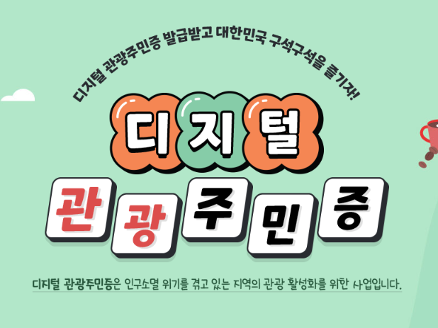 디지털 관광주민증은 인구 소멸 위기를 겪고 있는 지역의 관광 활성화를 위한 사업입니다.