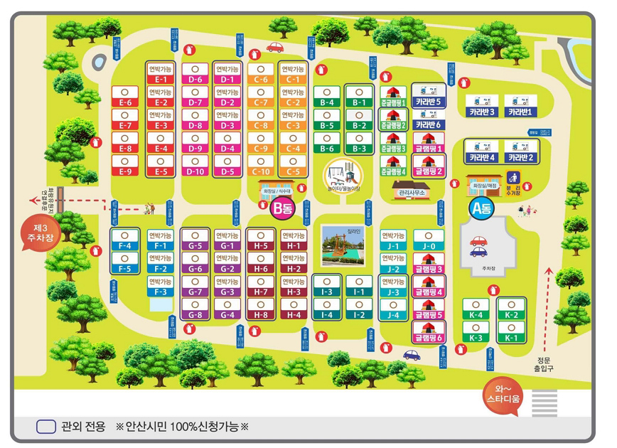 게다가 안산시에서 관리하여 편의시설도 깨끗하고 잘 갖추어져 있어 캠퍼들에게 무척 인기가 높은 캠핑장입니다.