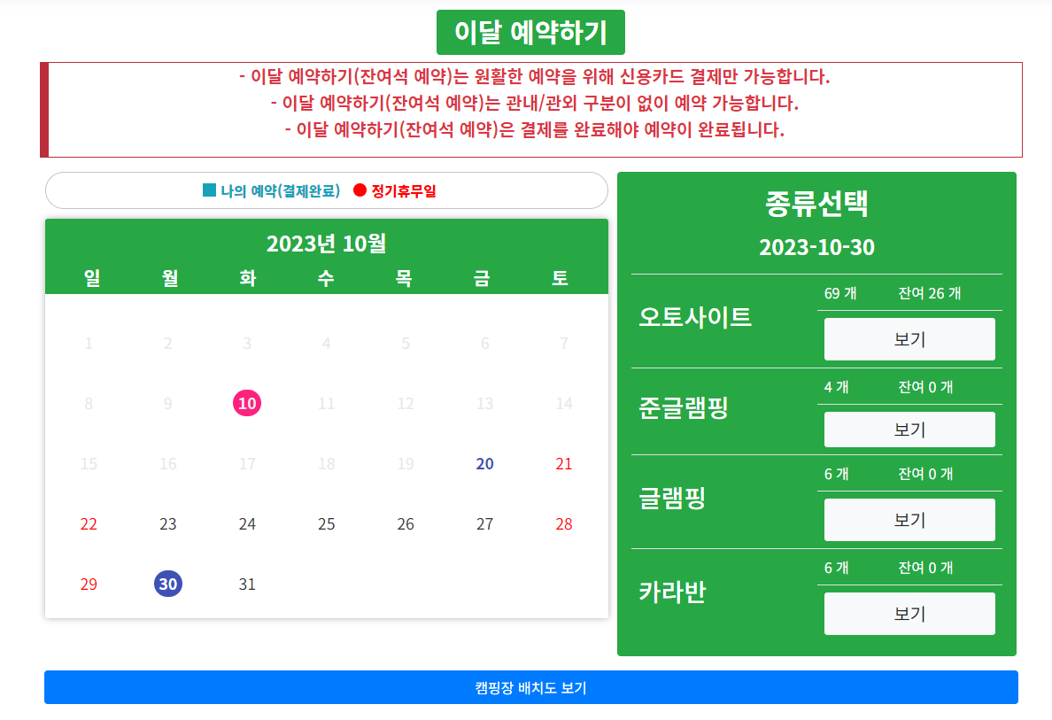실시간 예약: 매달 15일 오전 10시부터 다음 달 잔여자리 선착순으로 예약 가능