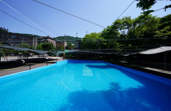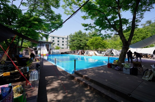 경기도 양주시 기산리에 위치한 송천캠핑장은 인근에 출렁다리로 유명한 마장호수가 있으며, 시원한 안고령계곡을 끼고 있습니다. 특히 여름에는 안고령 계곡이 바로 옆에 있어서 계곡에서 물놀이가 가능하며 캠핑장 내에서 야외 수영장을 별도로 운영하고 있습니다.