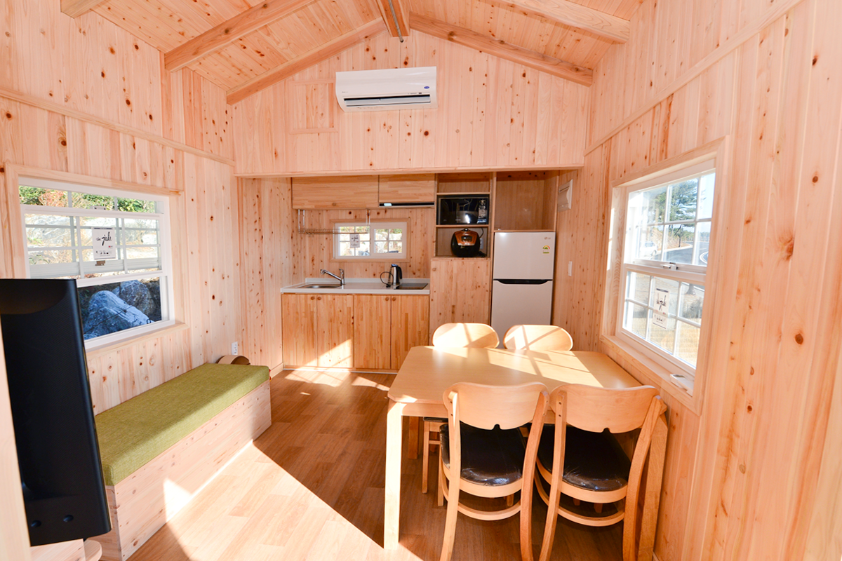 - 카라반(11면) 및 캐빈형(8면 복층): 총 19면, 최대 6인까지 이용 가능하며, 내부에는 침대, 에어컨, TV, 냉장고, 주방 등이 갖춰져 있습니다.