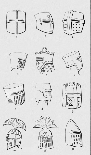 무기 제작가들은 석궁에서 발사된 볼트를 비껴가기 위해 평평한 윗부분을 가진 헬멧을 만들기 시작했습니다.