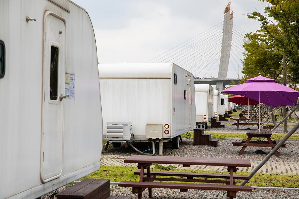 아라뱃길을 따라 조성된 캠핑장은 드넓은 공간과 아라뱃길의 노을로 유명합니다. 깨끗하고 넓직한 사이트를 보유하고 있어 가족단위 캠퍼들에게 매우 인기가 높습니다.