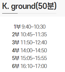 K.ground : (90분) 15,000원 , (50분) 10,000원, 5세(48개월 이상) ~ 초등 4학년 이용