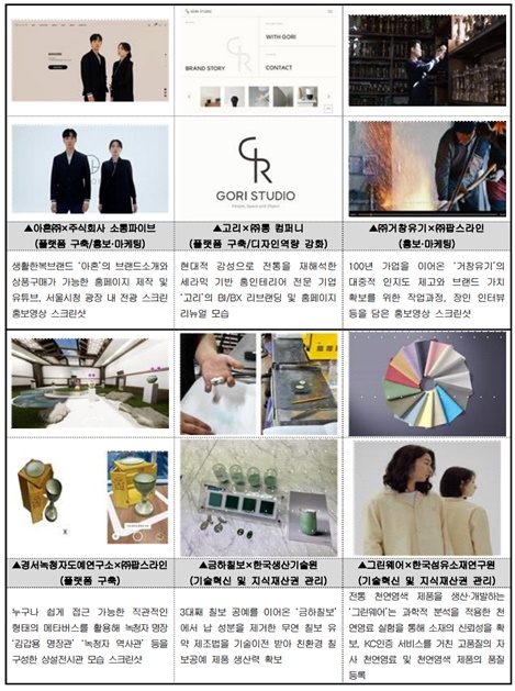 - 사업고도화 분야: 플랫폼 구축, 시제품 제작, 경영 컨설팅, 홍보·마케팅, 디자인 강화, 환경 개선 등 6개 프로그램을 제공합니다.